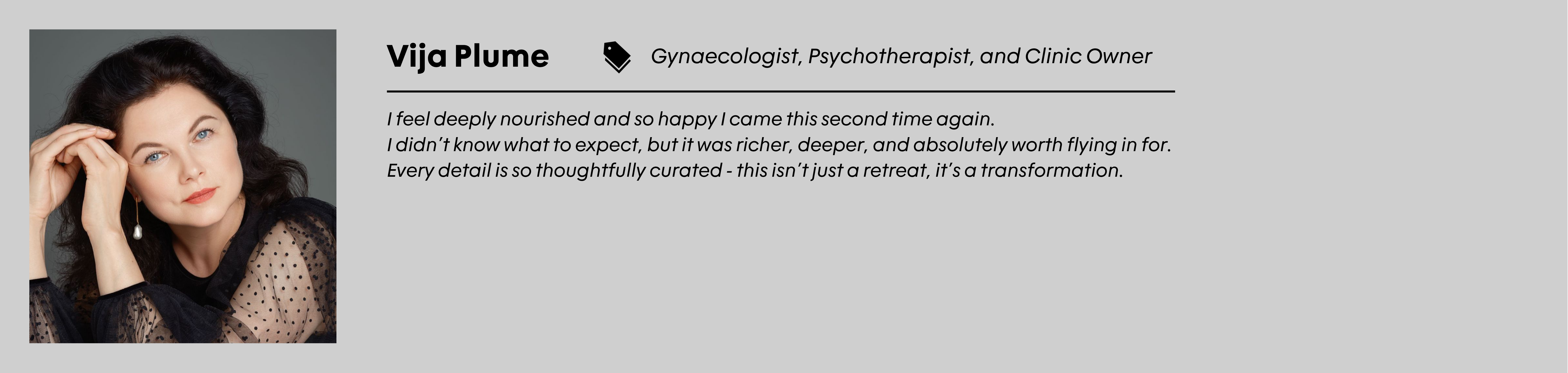 This intimate retreat offers a profound reset, where stillness meets insight, and where fresh perspectives unfold naturally. With the guidance of international coaches Elke Preuss and Dana Poul-Graf, you’ll experience a unique blend of reflection, deep conversations, and empowering practices designed to bring you back to yourself.